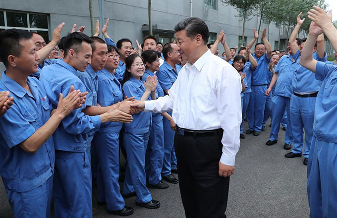 Chinese President Xi Jinping visits Taiyuan Heavy Industry Railway Transit Equipment Co., Ltd. in Taiyuan, capital of North China's Shanxi province, June 22, 2017.