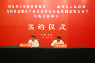 The Shanxi provincial government signed an agreement with the National Grain and Material Reserve Bureau in Taiyuan on May 20 to advance the development of the grain industry in the province.