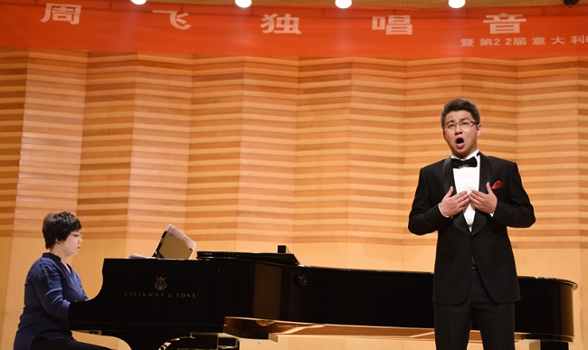 Updated : 2017-09-25Zhou Fei, recognized as the top baritone in Shanxi province, gave a solo concert at the hall of the Academy of Music of Shanxi University (SXU) on Sept 8.