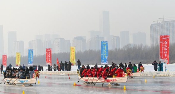 A dragon race event on ice kicked off on the Hunhe River in Shenyang, capital of Northeast China’s Liaoning province on Jan 3.