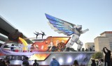 The parade float of Liaoning province is displayed in front of the Liaoning Provincial Library in Shenyang.
