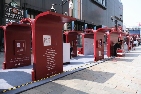A 20-meter-long audio book gallery makes its debut in Zhongjie Street in Shenyang, capital of Liaoning province, on April 23.