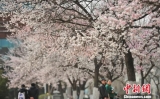 Peach blossoms at the university attracted a large number of visitors, on April 17.