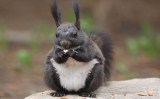 A squirrel eats peanuts at Zhongshan Park in Shenyang, Liaoning province, on April 23, attracting numerous residents.