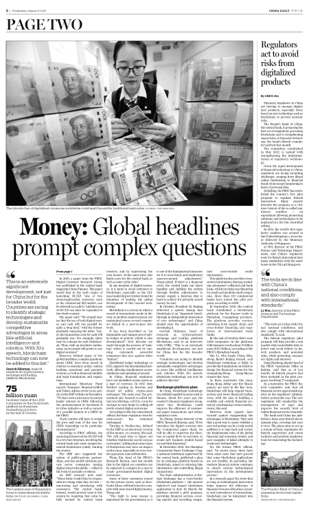 Financial regulators in China are moving to manage digitalized products, especially those based on new technology such as blockchain, to prevent systemic risks.