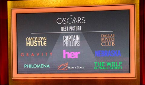 Con-men caper "American Hustle" and space thriller "Gravity" led Oscar nominees on Thursday with 10 nominations each, including best picture, in the race for the world's top film prize.
