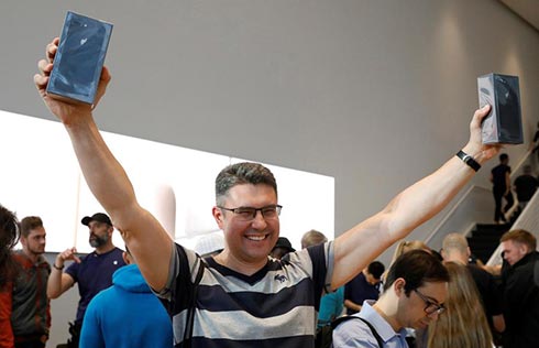 New iPhones went on sale Friday across the world, but short lines and fewer people were seen at the stores waiting to buy the high-priced products compared to the previous years.