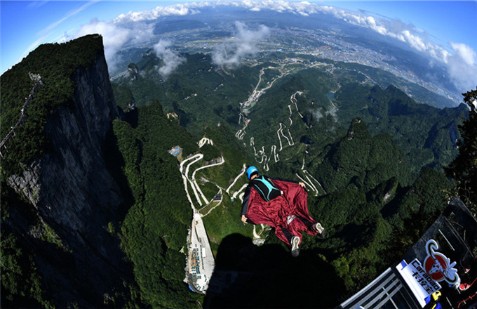 Jumping off a cliff 1,458 meters above sea level is all a part of the game for those participating in this year's World Wingsuit Championship in Zhangjiajie, China.