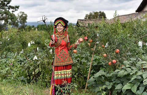 Zhou Lan, one of a few university graduates in a village of Southwest China's Sichuan province, helps her family sell pomegranates on the live broadcasting platform, earning up to 180,000 yuan a month in the harvest period.
