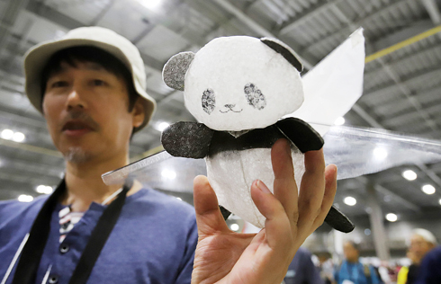 A panda-shaped ultra light ornithopter, weighing only 17 grams, was a special attraction at the Maker Faire Tokyo 2017 in Tokyo, Japan, August 5, 2017.