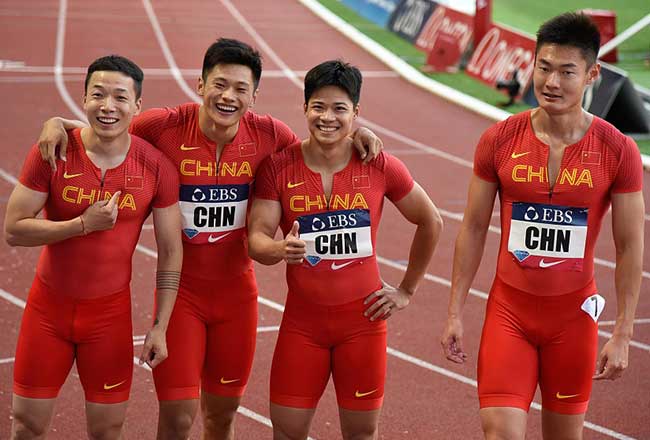 China claimed a shock victory in men's 4x100m relay at Friday's Diamond League meet in Monaco.