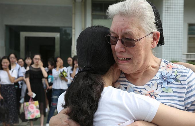 Many past and present students couldn't help shedding a tear as they farewelled Esther Snader from Anqing of East China's Anhui province.