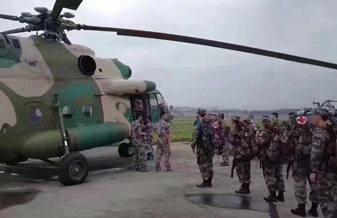 A team of soldiers from the Western Theater Command and 15 medical staff members from Chengdu Military General Hospital boarded two helicopters in Chengdu, capital of Southwest China's Sichuan province, and left for the landslide site at 2 pm today. The landslide occurred at 6 am and buried 46 homes, leaving 141 people missing. The onsite rescue operation is under way.