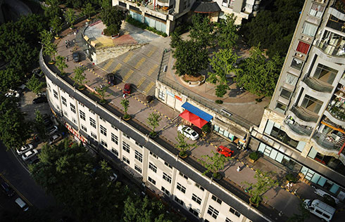 A picture of a road on the top of a building in southwest China's Chongqing municipality recently went viral online, with people saying they were amazed by the strange design and unique landscape of the mountain city.