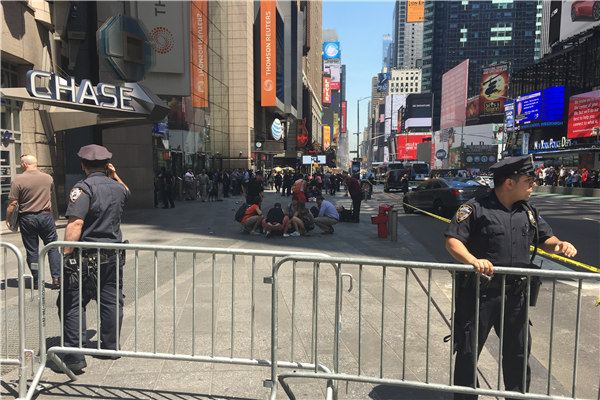 A driver careening against traffic in New York’s Times Square on Thursday struck more than 20 pedestrians, fatally injuring a young woman before his car came to a stop on two wheels against a light pole.