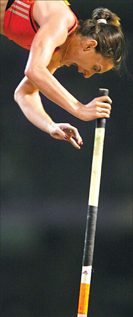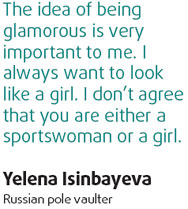 The current World and Olympic champion has set 22 world records and is regarded as one of the most successful athletes of her generation. The lithe competitor, often compared to fellow Russian Maria Sharapova for her cover-girl appeal, is hungry for more success. She told the media after her Rome triumph, where she jumped 5.03m to beat her previous record set in 2005 by 2cm, that she has higher to go and that her aim is to smash the 35 world records set by Ukraine's Sergey Bubka in the men's pole vault. "You saw I was not near at the bar, I was higher. My goal is to jump 36 world records," she said. Isinbayeva will certainly be one of the most glamorous figures in Beijing. It was rumored that Chelsea FC owner Roman Abramovich chose her to be the "million-dollar face" of one of his main companies. "The idea of being glamorous is very important to me. I always want to look like a girl. I don't agree that you are either a sportswoman or a girl. It's important that there are women who bring glamor to sport," she says. Isinbayeva, who was the first woman in history to clear the once seemingly insurmountable 5m barrier at Crystal Palace in London in 2005, a year after taking gold at Athens, comes from a different background from the millionairess lifestyle she now leads. Her father was a plumber and her mother a shop assistant and they struggled to support her and her sister in Volgograd. Isinbayeva declared she wanted to be an Olympic champion at five and trained as a gymnast until 15 by which time she was considered too tall at 1.74m to ever make it at the top level. Switching to pole vaulting, her early performances were far from impressive. At the World Junior Championships in France in 1998 she jumped just 4m, 10cm away from the medal placings. Yet, a year later she took her first gold medal and was in the Russian team in the Sydney Olympics, when women's pole vaulting was an event for the first time. One of the most intriguing battles of the 2004 Games was the battle between her and her fellow Russian Svetlana Feofanova, which was under the world's gaze because all other track and field events had finished. Isinbayeva took the top medal with a then world record of 4.91m, as her rival failing to scale 4.90m.