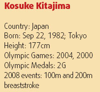 Kitajima, however, does have a lot to prove. He has not beaten Hansen head to head since 2005 while the American, who will be 27 in August, has kept breaking records. And he is already applying the pressure on himself. "I only have the gold medals on my mind. I won't come home if I don't get them," he said. Kitajima, who will be wearing his now trademark Speedo's blockbuster LZR Racer swimsuit in Beijing after being given the go ahead by the Japanese Swimming Federation, first came to prominence when he finished fourth in the 100m at the 2000 Sydney Games, then the best ever finish for a Japanese male swimmer in a country with little tradition in the sport. His first world-class victory came at the 2002 Pan-Pacific championships when he won the 100m, followed by double gold medals at the 2002 Asian Games where he set his first world record of 2:09.97 in the 200m. Relatively small at 1.77m and 72kg, Kitajima is known for his efficient swimming style, compared to Hansen's powerful strokes. After building up his muscles, Kitajima has expanded the length of his strokes by 1.5 times this year to match his big kicks, in what his coach Norimasa Hirai calls "four-wheel-drive swimming." Kitajima, who arrived in Beijing looking like David Beckham with his hair cut short and sporting a fashionable beard, says that shopping is one of his big outside interests. "I love fashion," he said. "One of the ways I can relax is by going shopping and buy things that will change the way I feel." He also likes driving but has little opportunity to do so. "I'm always overseas, so I just drive the car we have at home."