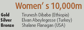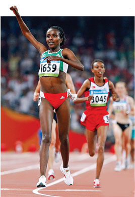 Updated: 2008-08-16 09:09 Long-distance runner Tirunesh Dibaba took the gold in the women's 10,000 metre race yesterday evening, earning Ethiopia the first medal in the track events. Dibaba won the 10,000m in an Olympic record 29 minutes, 54.66 seconds - the second fastest time ever for a woman at that distance.
