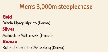 Updated: 2008-08-19 08:19 Brimin Kiprop Kipruto of Kenya won his first Olympic title in the men's 3,000m steeplechase yesterday to maintain his country's dominance in this event. The 23-year-old finished in 8min 10.34sec to win the title which Kenyan runners have retained since Los Angeles Games in 1984. While it was his seasonal best result, he was pushed to the limit by the silver medalist, Frenchman Mahiedine Mekhissi, who ran in 8:10.49. Kenya's Richard Kipkemboi Mateelong won the bronze in 8:11.01. The defending champion, Kenya's Ezekiel Kembol, could only finish in seventh. Agencies ![]() (China Daily 08/19/2008 page6) |