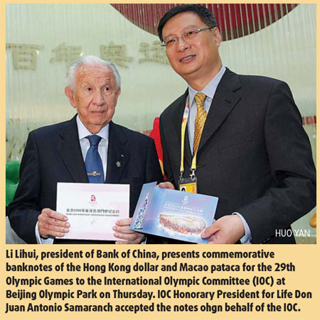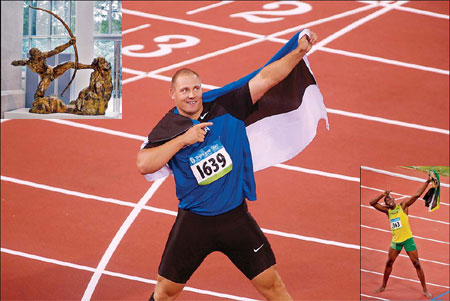 Updated: 2008-08-23 10:38 ![]() He points his fingers and cocks his arm as if he's shooting an arrow, like the Greek god Apollo. Usain Bolt calls his pose "To the World" and it seems to be catching on. Reigning world champion in discus Gerd Kanter of Estonia took the gold medal with his fourth attempt at 68.82m, then he reprised the "lightning bolt" action to the delight of fans. Centenarian wired for Games A 100-year-old woman living in Jiangsu province has become so addicted to watching the Olympics that her family has been pretending the TV has no signal. Dang Cuiying sits all day cheering on athletes and refuses to take breaks. When her family insists, she sneaks back into the sitting room to watch more Olympic action. Her family is so concerned about her recent TV habits that they have pulled the antenna out of the socket and pretended there was no signal, according to the Yangtze Evening News. The pin has dropped Beijing's most popular pins include logos from sponsors like Coca-Cola and Kodak, along with one that has a pop-out image of the Bird's Nest. NBC has a camera-shaped pin that lights up and a Samsung pin features a cell phone that slides open, according to the International Olympic Committee website. Chinese traders tend toward pins depicting dragons, including a set that places Beijing's five Olympic mascots against a dragon in the background. Li Ning shows caring side Former Chinese gymnast and star of the Opening Ceremony Li Ning has donated 20,000 euro ($29,700) to a benevolent fund for German gymnast Oksana Chusovitina to cure her son's leukemia. Oksana Chusovitina is dubbed "Gymnastic grandma" by Germany media. Li Ning told her she was a legend. The pair took part in the Barcelona Games 16 years ago, reported the Beijing Times. Adding oil to flames Chinese fans shouting jia you to cheer on their athletes are confounding foreigners, according to the Yangtze Evening News. Jia you is literally translated to "add oil", but this doesn't mean anything to foreigners used to shouting "Come on!" or "Go!" Doesn't suit you, sir A large man wearing just a pink skirt disturbed an equestrian event in Hong Kong on Thursday. The Chinanews.com reported that the portly man was run down by security officers and escorted out of the arena. An Olympics to remember An elderly sports fan has been collecting newspaper clippings on every Chinese Olympic champion and is making an album out of them. Wang Pigong, 77, from Hanyang Xin Village in Wuhan of Hubei province, showed his clippings to the Wuhan Evening News, saying: "The more medals the Chinese team wins the busier I am and the happier I feel."