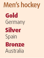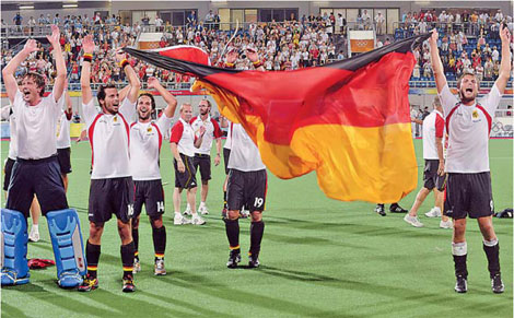 Power-packed Germany won the men's hockey gold medal after 16 years with a hard-fought 1-0 win over Spain in the final yesterday. Christopher Zeller netted the winner in the 16th minute with a ferocious penalty corner. The Germans spent most of the rest of the match thwarting repeated Spanish attacks. This was hockey's 100th year at the Olympics. Germany added the Olympic title to its World Cup triumph two years ago, reinforcing its credentials as the sport's foremost nation despite losing the No 1 ranking to Australia in June. Germany had won bronze in Athens four years ago; its victim then too was Spain. Said German captain Timo Wess: "We played our best hockey today and this has to be our biggest success ever. "I am so proud of the team. The great team spirit we have is what carried us through.is." It was two-in-a-row for coach Markus Weise, who had led the German women's team to its maiden Olympic title in Athens. Spain lived up to its billing as the best team never to have won the Olympic gold. It faltered for the third time, after losing finals to India in 1980 and the Netherlands in 1996. The Spanish strikers, led by the seasoned Santi Freixa, raided the rivals' half through 70 minutes of gripping hockey, but could not get past the sturdy German defence. Freixa, who had scored five goals in the competition, failed to convert three penalty corners as Germany built on the 1-0 win over Spain in the preliminary league. "I am sad because we made the same mistakes again," said Freixa. "When they are leading, all they do is defend. We tried everything to get a goal but just could not beat their defence." Bronze for Australia