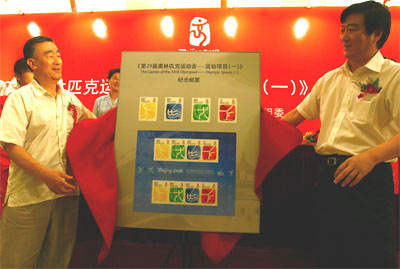 On the occasion of the two-year countdown to the opening of the 2008 Olympic Games, the State Post Bureau and the Beijing Organizing Committee for the Games of the XXIX Olympiad (BOCOG) jointly launched the first issue of the commemorative stamps on the theme of Sports of the XXIX Olympiad (first part of a series) in Beijing on Tuesday.