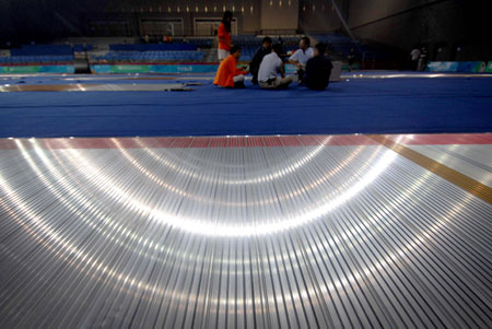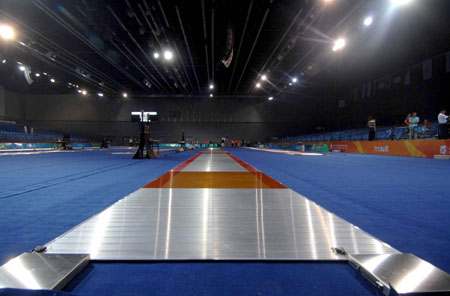 Newly-completed fencing strips are seen in the Fencing Hall, National Conference Center, Olympic Green in this picture taken on September 13, 2007. [Xinhua]