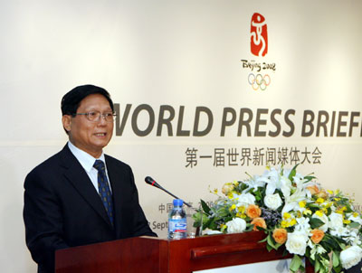 Liu Qi, president of BOCOG, speaks at the Olympic World Press Briefing in Beijing September 27, 2006. [Xinhua] |
