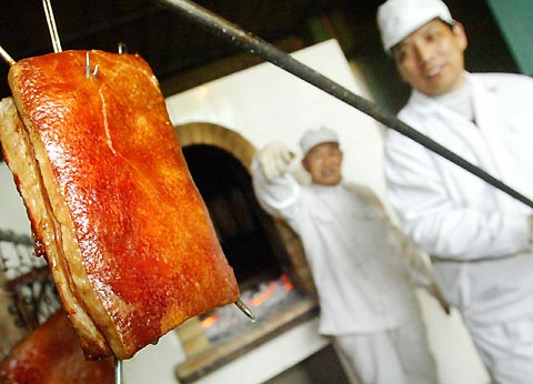 Tianfuhao Roasted Pork on November 22, 2006. [Newsphoto]