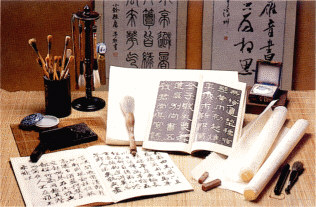 Treasures of a Study is a set of high-quality traditional Chinese stationery, including a writing brush produced in Huzhou, East China's Zhejiang Province, an inkstick produced in Huizhou, East China's Anhui Province, Xuan paper, a Duanxi ink-slab, a jade seal and a rosewood paperweight.