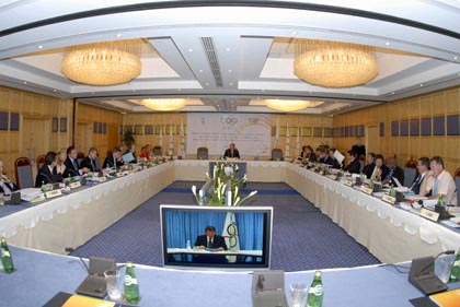 A delegation from the Beijing Organising Committee for the Games of the XXIX Olympiad (BOCOG), led by BOCOG Executive Vice-President Wang Wei reported to the IOC Executive Board (EB) in Kuwait November 29, 2006. [BOCOG] |
