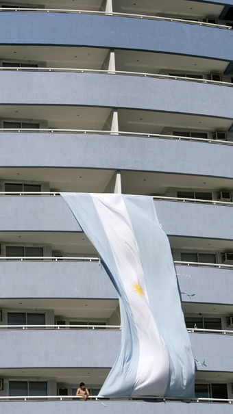 A huge Argentinian flag is seen on a building of the Pan American Games Village in Rio de Janeiro July 10, 2007. Brazil will host the Pan American Games in Rio de Janeiro from July 13 to 29. [Reuters] |