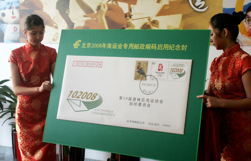 102008, the first zip code for the Olympic Games in history, was introduced at the headquarters of The Beijing Organizing Committee for the Games of the XXIX Olympiad (BOCOG) on Wednesday.