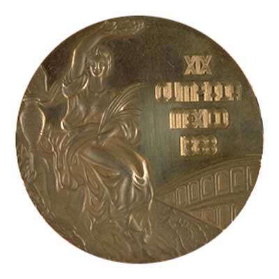 For these Games, the picture of victory is accompanied by the specific inscription: "XIX OLIMPIADA MEXICO 1968".