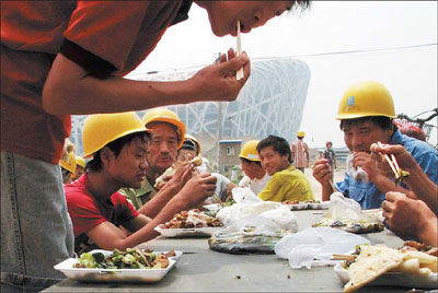 The 30 Olympic venues located in Beijing are built by tens of thousands of migrant workers from across the country. The Fengtai Softball Field was the first venue completed in June 2006, while the others all progressing on schedule. The last venue to be completed is the National Stadium, which will be ready in March 2008.