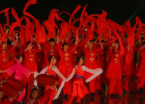 Dancers perform during the one-year countdown celebrations for the 29th Olympic Games in Tiananmen Square in Beijing August 8, 2007. [BOCOG]