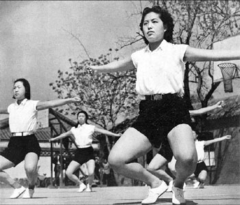 Students perform gymnastics at a school in Beijing in the late 1930s. Courtesy of Life Week.[Courtesy of Week]