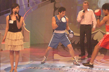 Lin Jiao (left) wins the third place at the Olympic English TV contest organized by the Beijing TV in July 2007. [Jennifer Guan/chinadaily.com.cn]