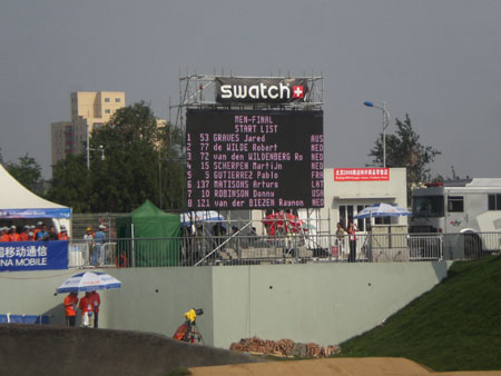 The score board is seen at Laoshan Bicycle Moto Cross (BMX) Venue, the venue for BMX of Beijing Olympic Games. [chinadaily.com.cn]