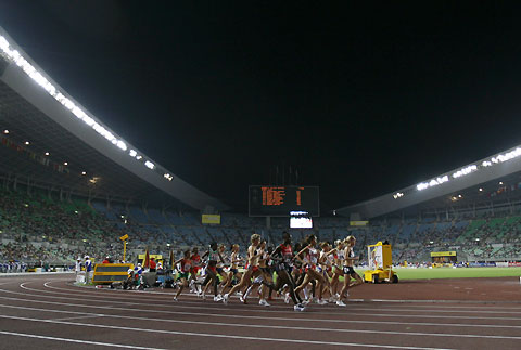 Athletes compete during the women's 10,000 metres finals at the 11th IAAF World Athletics Championship in Osaka August 25, 2007. [Reuters]