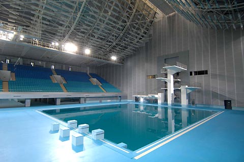 Ying Tung Natatorium, the arena to hold the waterball finals and the swimming events of Modern Pentathlon of the 2008 Beijing Olympics, has finished its enlargement construction. The photo was taken on September 7, 2007. [Xinhua]