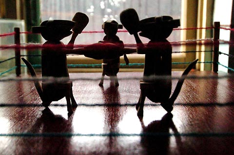 This photo shows the boxing rats made by Sha. [Xinhua]