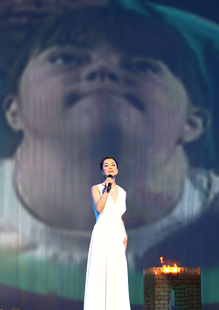 | An artist performs in the Special Olympics law enforcement torch run ceremony at the Juyongguan section of the Great Wall near Beijing, September 25, 2007. The torch will pass through more than 10 cities in China before the 10-day Games starts on October 2 in Shanghai. [Xinhua] |