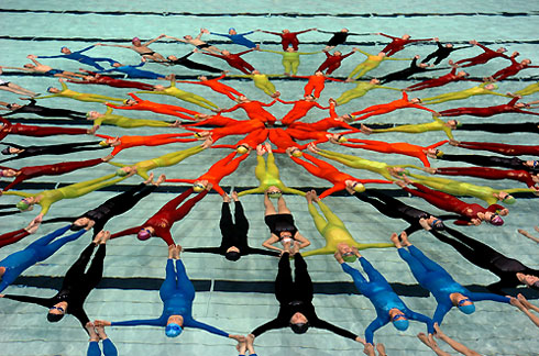 More than 100 swimmers from East China's Fujian Province gathered in capital city of Fuzhou on October 7 to pose for 2008 Olympic Games. [Xinhua]