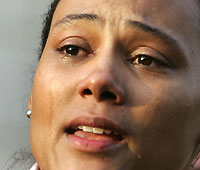Marion Jones cries as she speaks to the media after leaving the U.S. Federal Courthouse in White Plains, New York October 5, 2007. [Agencies]