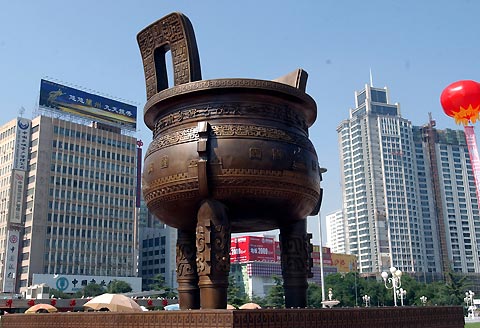 The Tripod sits on display on the Dongfanghong Square in Lanzhou, capital of Northwest China's Gansu Province on August 13, 2007. [Xinhua]