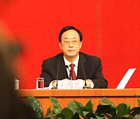Liu Jingmin, vice-mayor of Beijing and executive vice-president of the Beijing Organizing Committee for the Beijing Games, talks about the preparations for the Games in Beijing October 19, 2007. [Xinhua]