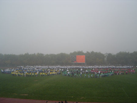 It was a massive presentation with nearly every member of the school participating. The students and teachers wore T-shirts in the colors of the Olympic Rings and stood in the middle of the field to form the Olympic flag as parents cheered for their children in the grandstand.