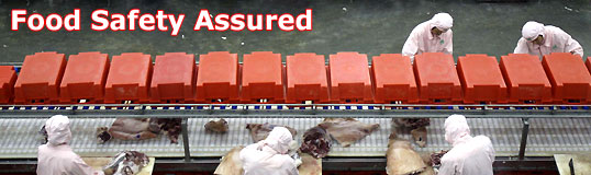 A laboratory assistant checks poultry samples at a chicken processing plant on the outskirts of Beijing November 12, 2007. All supplies to athletes, trainers and coaches will be scrutinized in a tracking system, which monitors food production, processing and delivery as well as hygiene conditions. [Agencies] |
