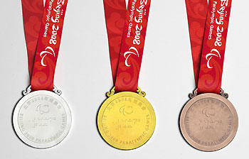 The reverse side of the medals given out at the Beijing 2008 Paralympic Games is seen in this photo taken on November 14, 2007. [Xinhua]